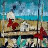 L'artiste a utilisé la technique Acrylique pour créer cette peinture petit format sur papier de style Art naïf sur le thème Paysages.