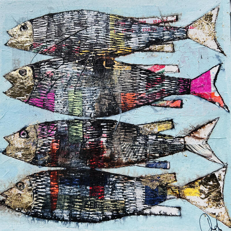 Cette oeuvre d'art contemporain unique et originale "Les sardines dorées" a été réalisée par l'artiste contemporain Colombo Cécile.