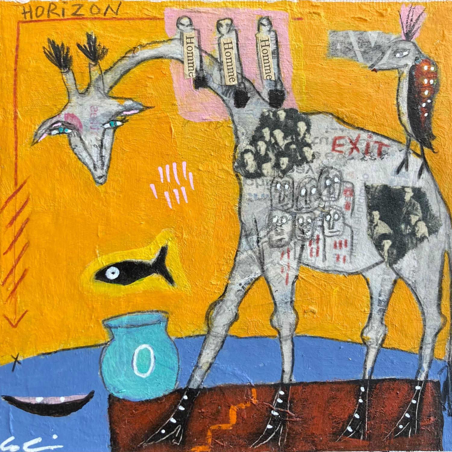 L'artiste a utilisé les techniques Acrylique, Collage, Pastel pour créer cette peinture petit format sur Carton toilé de style Art Singulier sur le thème Animaux.