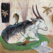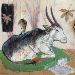 L'artiste a utilisé les techniques Acrylique, Collage, Pastel pour créer cette peinture grand format sur Papier de style Art Singulier sur le thème Animaux.
