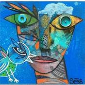L'artiste a utilisé les techniques Acrylique, bois pour créer cette peinture petit format sur bois de style Art Singulier sur le thème Portraits.