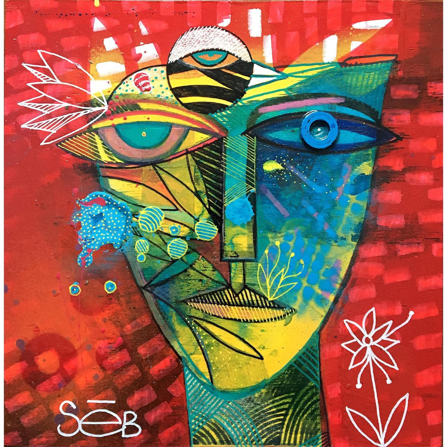 Cette oeuvre d'art contemporain unique et originale "Mata et l'oiso" a été réalisée par l'artiste contemporain Seb.