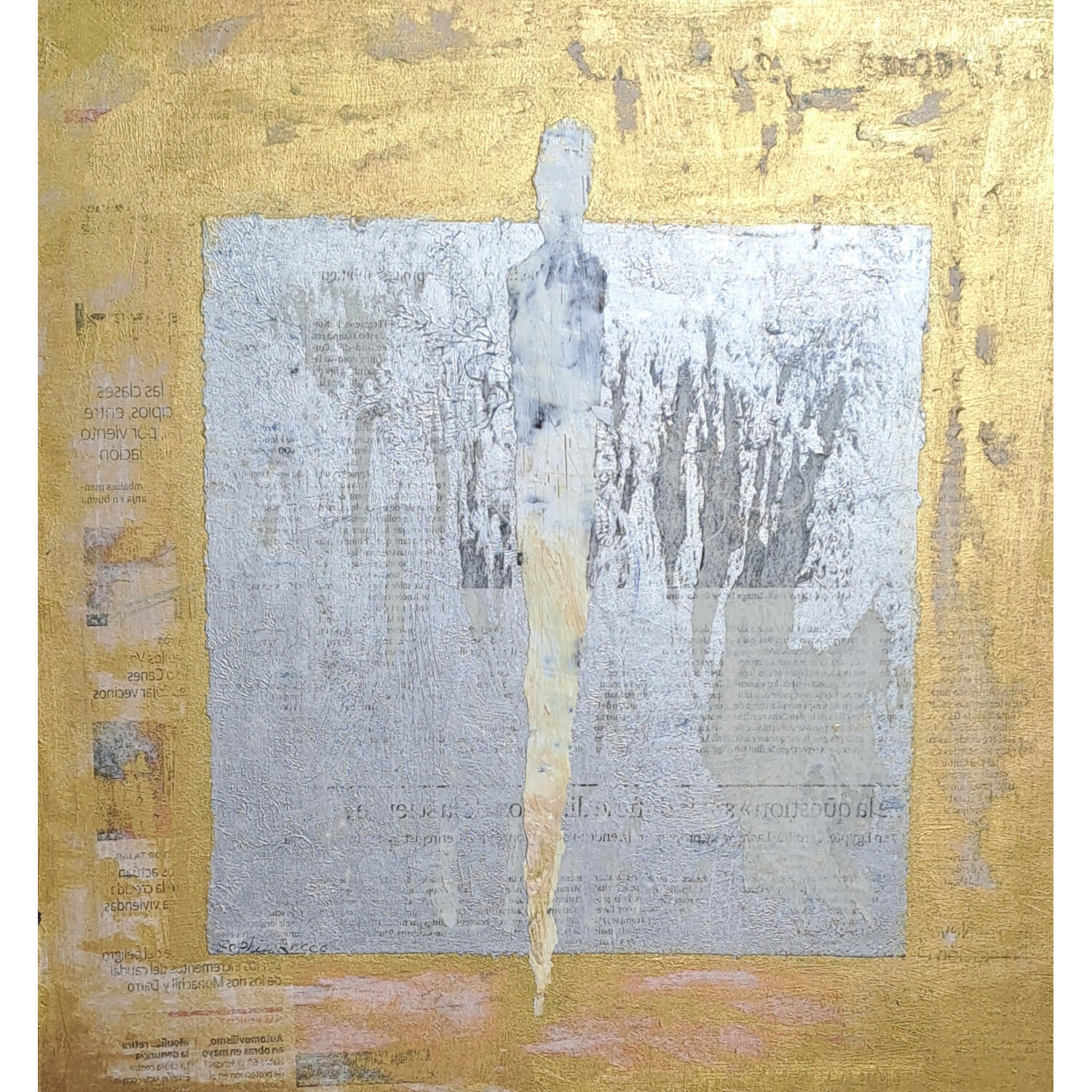 L'artiste a utilisé les techniques Acrylique, Collage, Sable pour créer cette peinture petit format sur Carton toilé de style Art Singulier.