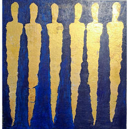 Cette oeuvre d'art contemporain unique et originale "Du bleu dans l'Or" a été réalisée par l'artiste contemporain Rocco Sophie.