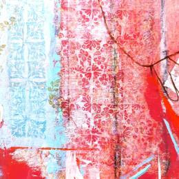 L'artiste a utilisé la technique mixte, Taille d'épargne, Estampage, Encre, Acrylique, Pastel, Upcycling pour créer cette peinture grand format toile sur Bois de style Art Singulier.