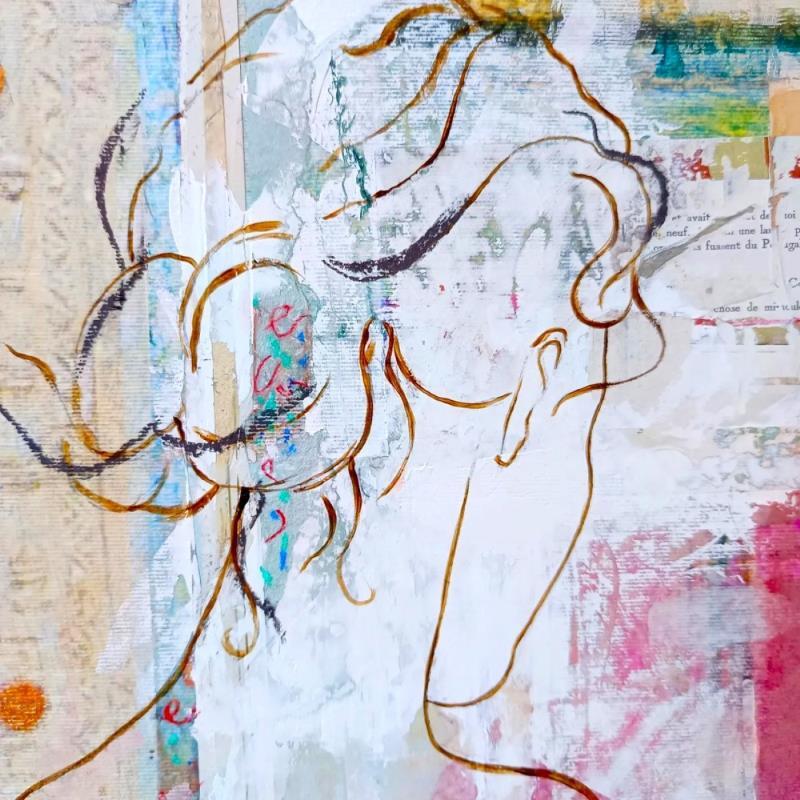Peinture Impression d'ailleurs par Sablyne | Tableau Art Singulier Portraits Scènes de vie Bois Acrylique Collage Encre Pastel Feuille d'or Upcycling Pigments