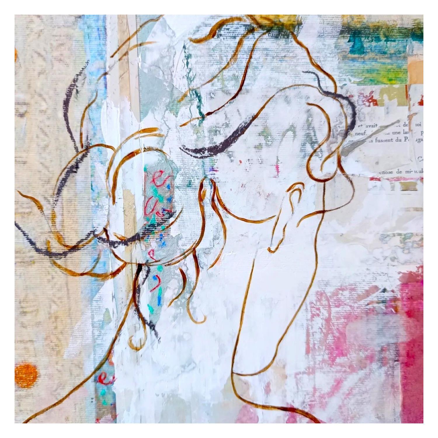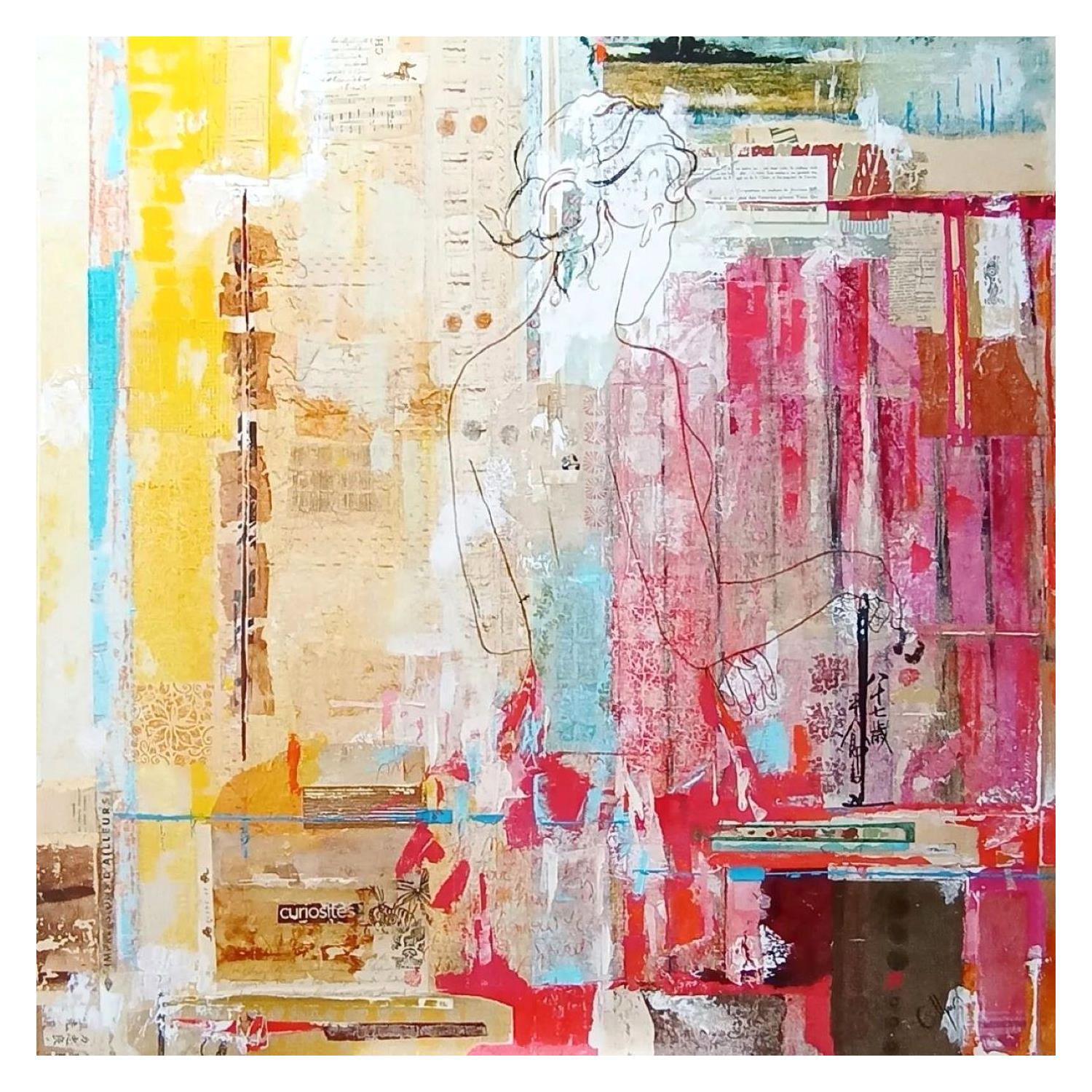 Impression d'ailleursPeinture Impression d'ailleurs par Sablyne | Tableau Art Singulier Portraits Scènes de vie Bois Acrylique Collage Encre Pastel Feuille d'or Upcycling Pigments