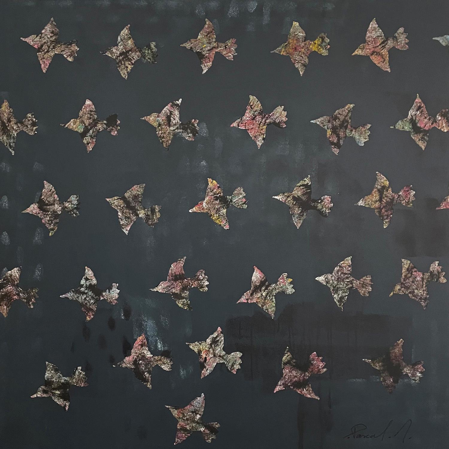 Peinture Murmuration par Marcel Pascal | Tableau Art Singulier Animaux Huile