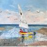 L'artiste a utilisé la technique Acrylique pour créer cette peinture petit format sur Papier de style Figuratif sur les thèmes Marine, Sport.