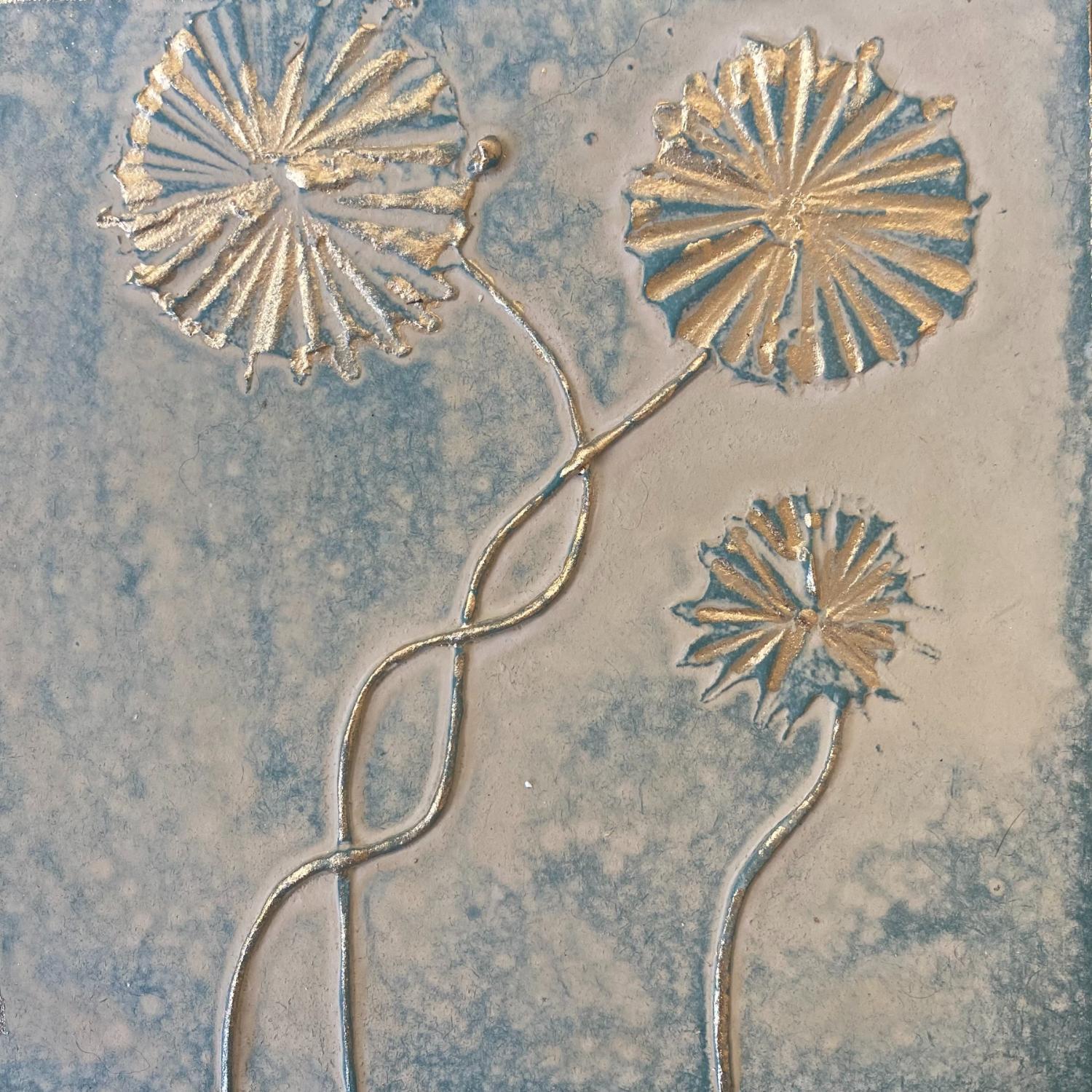 Cette oeuvre d'art contemporain unique et originale "Trois fleurs sur fond vert et beige" a été réalisée par l'artiste contemporain Trébucq Marion .