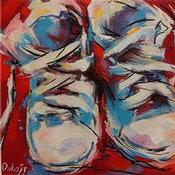 Cette oeuvre d'art contemporain unique et originale "En lacets" a été réalisée par l'artiste contemporain Dubost. L'artiste a utilisé la technique Acrylique pour créer cette peinture petit format sur toile de style Figuratif sur le thème natures mortes.