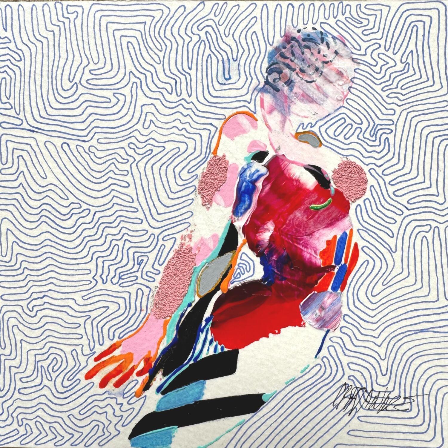 L'artiste a utilisé les techniques Acrylique, Sable pour créer cette peinture petit format sur Papier de style Figuratif sur le thème Nu.