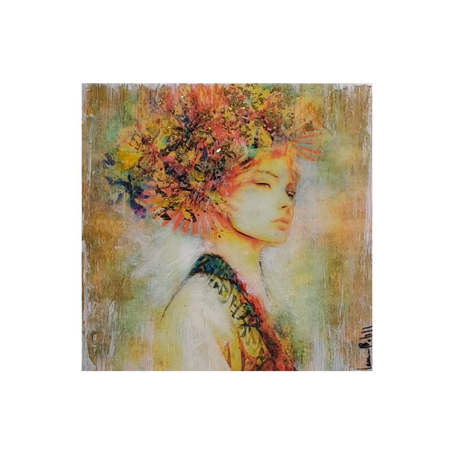 L'artiste a utilisé les techniques Acrylique, Résine pour créer cette peinture petit format sur Bois de style Figuratif sur le thème Portraits.