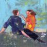 Peinture Conversation, au bord du Rhône par Ral Lourdes | Tableau Figuratif Portraits Scènes de vie Bois Acrylique