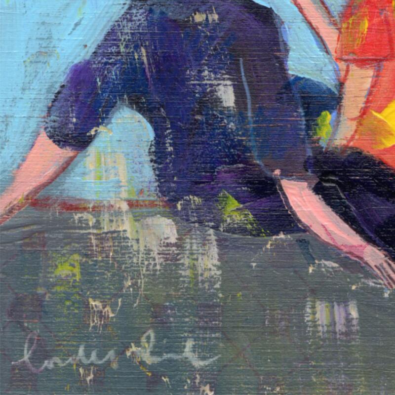 Lourdes Ral est une artiste espagnole à la croisée de la peinture et du design. Formée en histoire de l’art, elle a longtemps travaillé dans le graphisme avant de se consacrer pleinement à la création. Ses toiles racontent des scènes intimes : lectures, conversations, moments suspendus dans un café ou un jardin. Son univers, délicat et sensible, célèbre la beauté du quotidien et la chaleur des instants partagés.