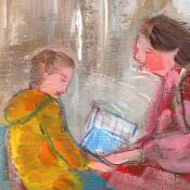 Lourdes Ral est une artiste espagnole à la croisée de la peinture et du design. Formée en histoire de l’art, elle a longtemps travaillé dans le graphisme avant de se consacrer pleinement à la création. Ses toiles racontent des scènes intimes : lectures, conversations, moments suspendus dans un café ou un jardin. Son univers, délicat et sensible, célèbre la beauté du quotidien et la chaleur des instants partagés.