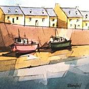 Bateaux à marée bassePeinture Bateaux à marée basse par Langlois Jean-Luc | Tableau Figuratif Marine Aquarelle