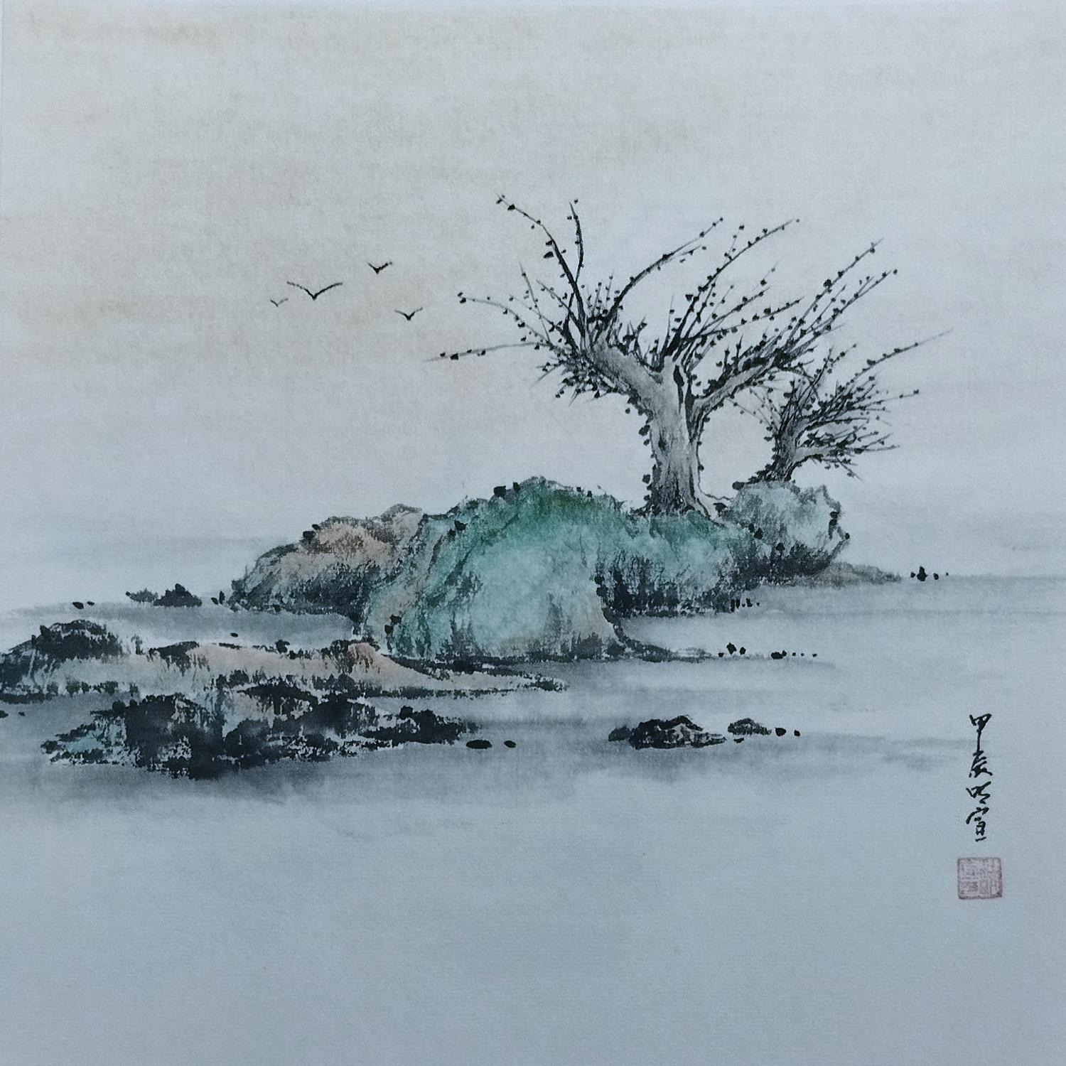 Cette oeuvre d'art contemporain unique et originale "Trees by the lake 2" a été réalisée par l'artiste contemporain Du Mingxuan.