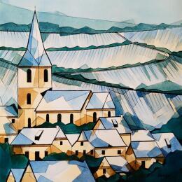 Neige dans les vignesPeinture Neige dans les vignes par Langlois Jean-Luc | Tableau Figuratif Paysages Aquarelle
