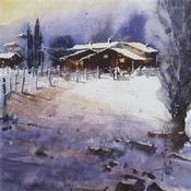 L'artiste a utilisé la technique Aquarelle pour créer cette peinture petit format sur papier de style Figuratif sur le thème Paysages.