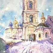 ChurchPeinture Church par Volynskih Mariya  | Tableau Figuratif Paysages Urbain Architecture Aquarelle