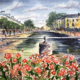 Troyes 189 Canal fleuri Peinture Troyes 189 Canal fleuri  par Hoffmann Elisabeth | Tableau Figuratif Urbain Aquarelle