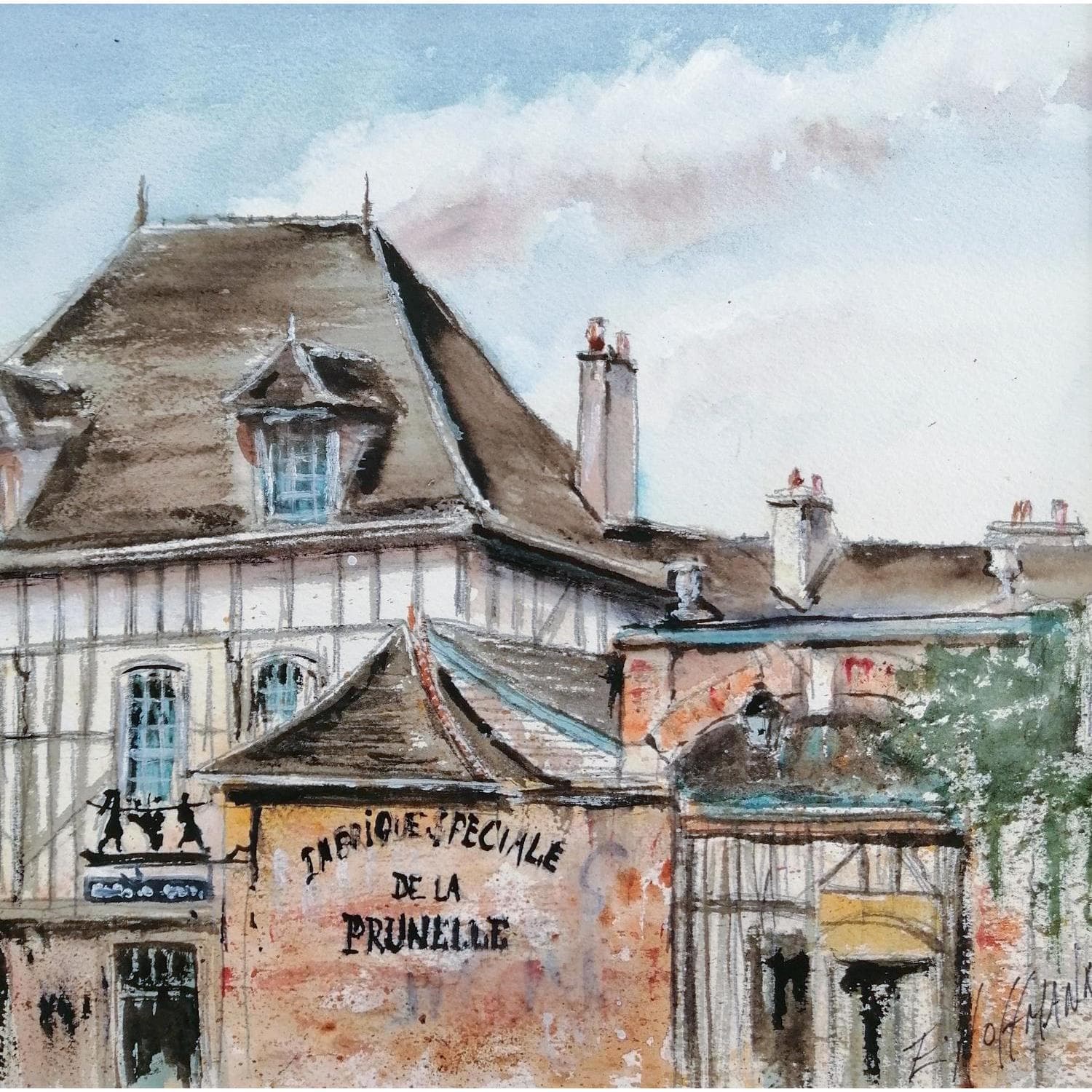 Troyes 6Peinture Troyes 6 par Hoffmann Elisabeth | Tableau Figuratif Urbain Aquarelle