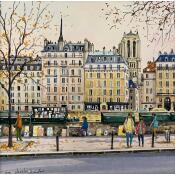 rive droitePeinture rive droite par Decoudun Jean charles | Tableau Figuratif Urbain Aquarelle