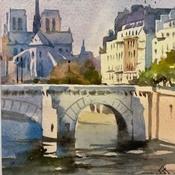 L'artiste a utilisé la technique Aquarelle pour créer cette peinture petit format sur papier de style Figuratif sur le thème Urbain.