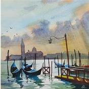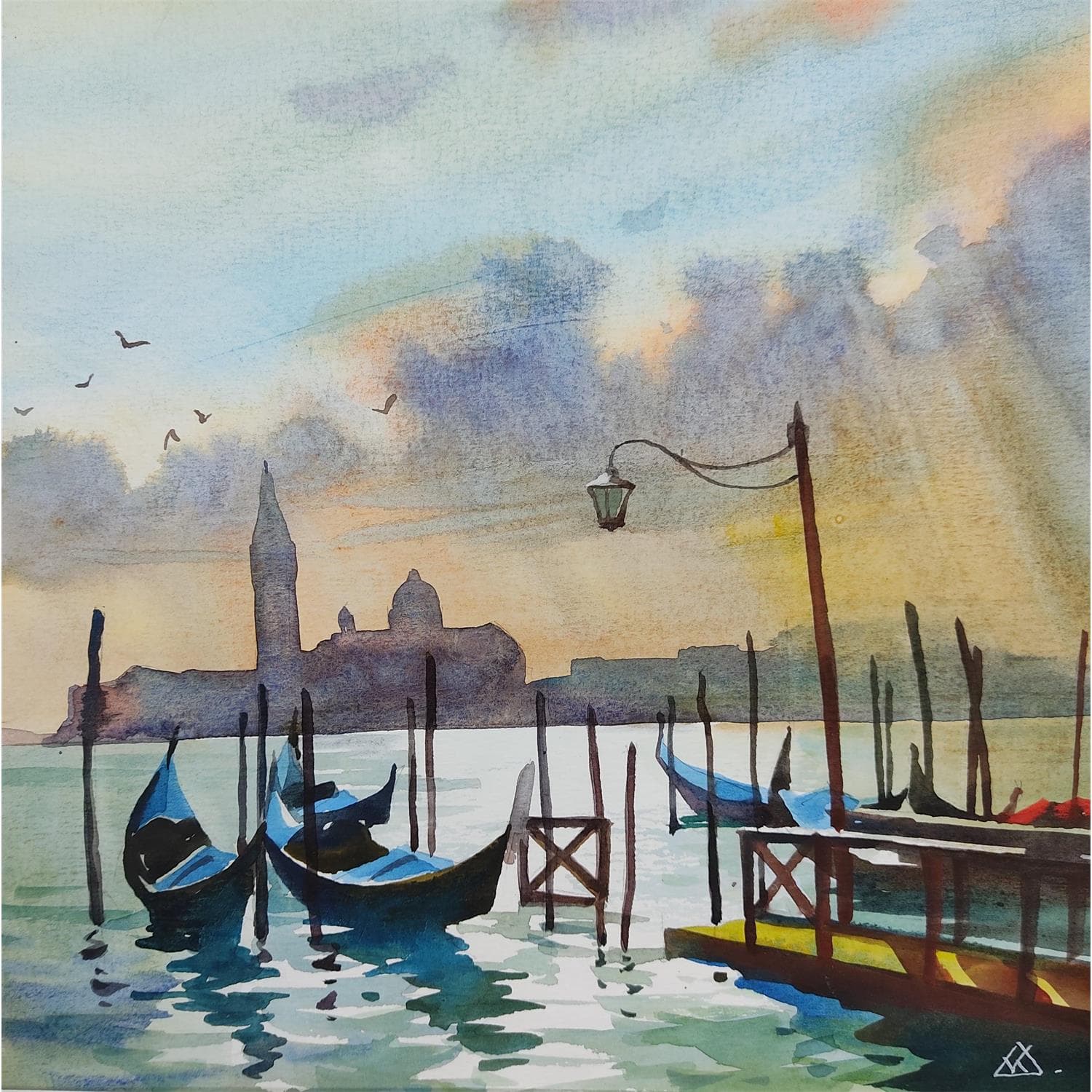 Venice - oct.9Peinture Venice - oct.9 par Khodakivskyi Vasily | Tableau Figuratif Urbain Aquarelle