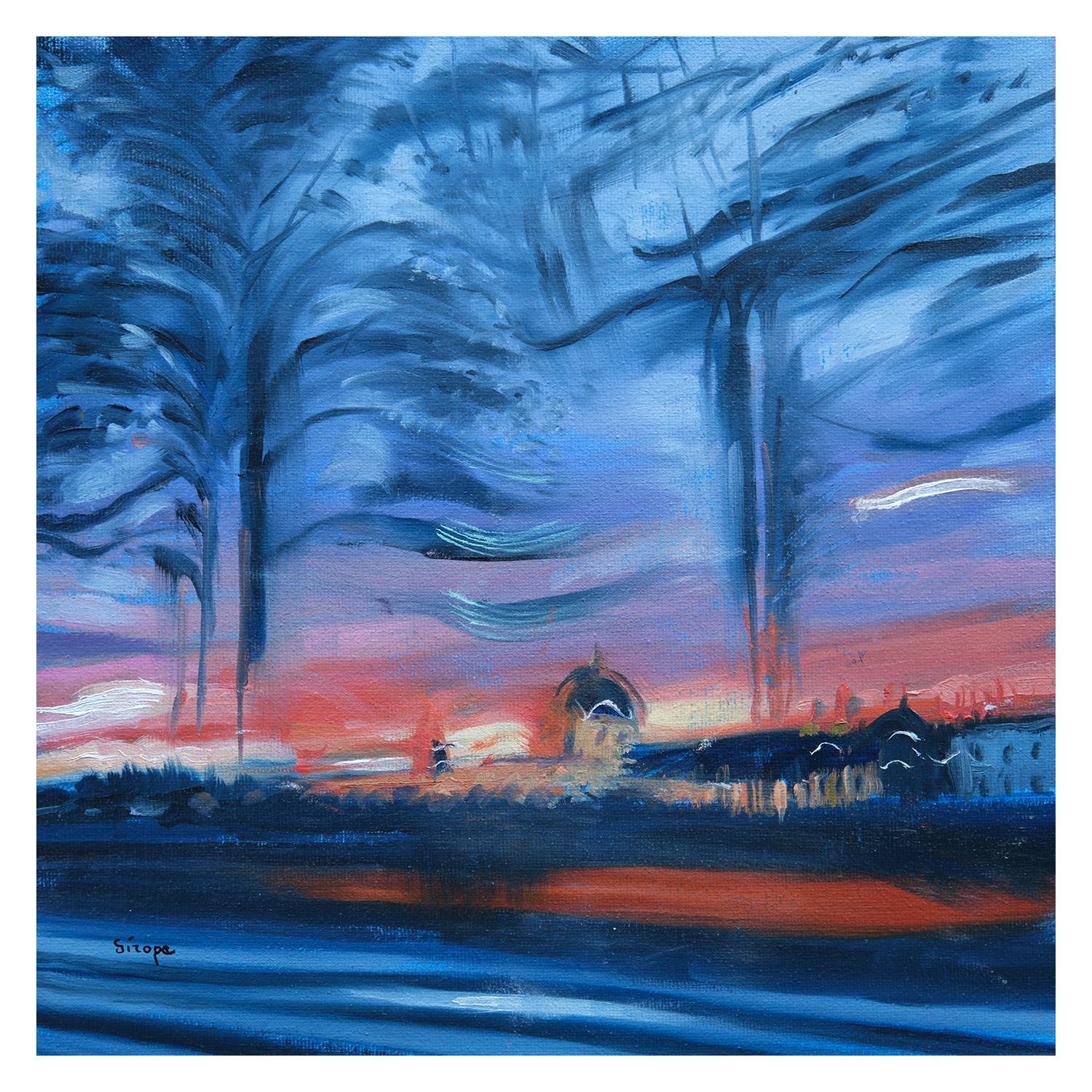 L'artiste a utilisé la technique Huile pour créer cette peinture petit format sur Toile de style Figuratif sur les thèmes Architecture, Urbain.