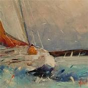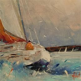 L'artiste a utilisé la technique Huile pour créer cette peinture petit format sur Toile de style Figuratif sur le thème Marine.