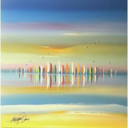 L'artiste a utilisé les techniques Huile, Acrylique pour créer cette peinture grand format sur Toile de style Figuratif sur le thème Marine.