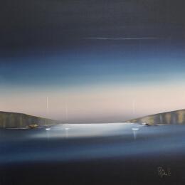 L'artiste a utilisé la technique Huile pour créer cette peinture grand format sur Toile de style Figuratif sur les thèmes Marine, Minimaliste.
