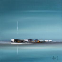 L'artiste a utilisé la technique Huile pour créer cette peinture grand format sur Toile de style Figuratif sur les thèmes Marine, Minimaliste.