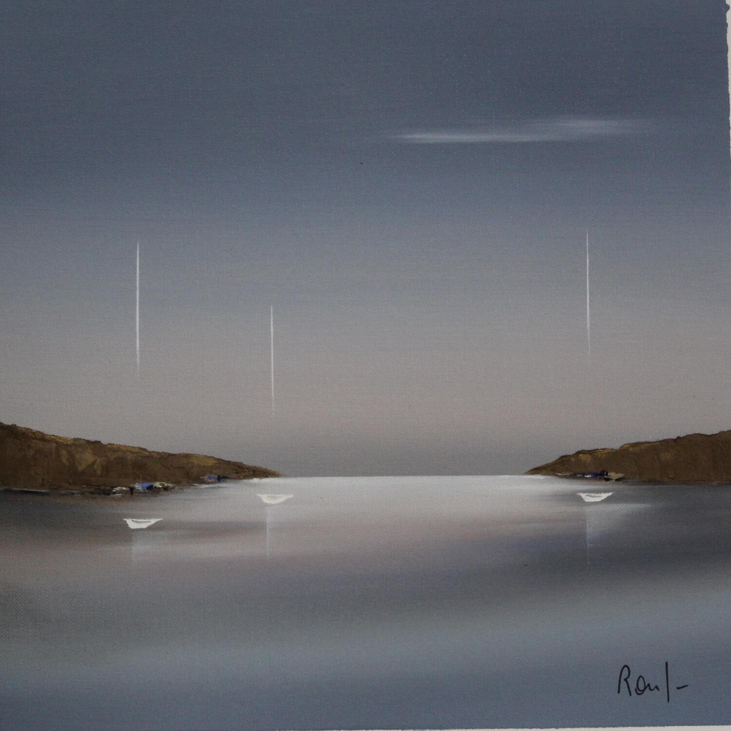 L'artiste a utilisé la technique Huile pour créer cette peinture petit format sur Papier de style Figuratif sur les thèmes Marine, Minimaliste.