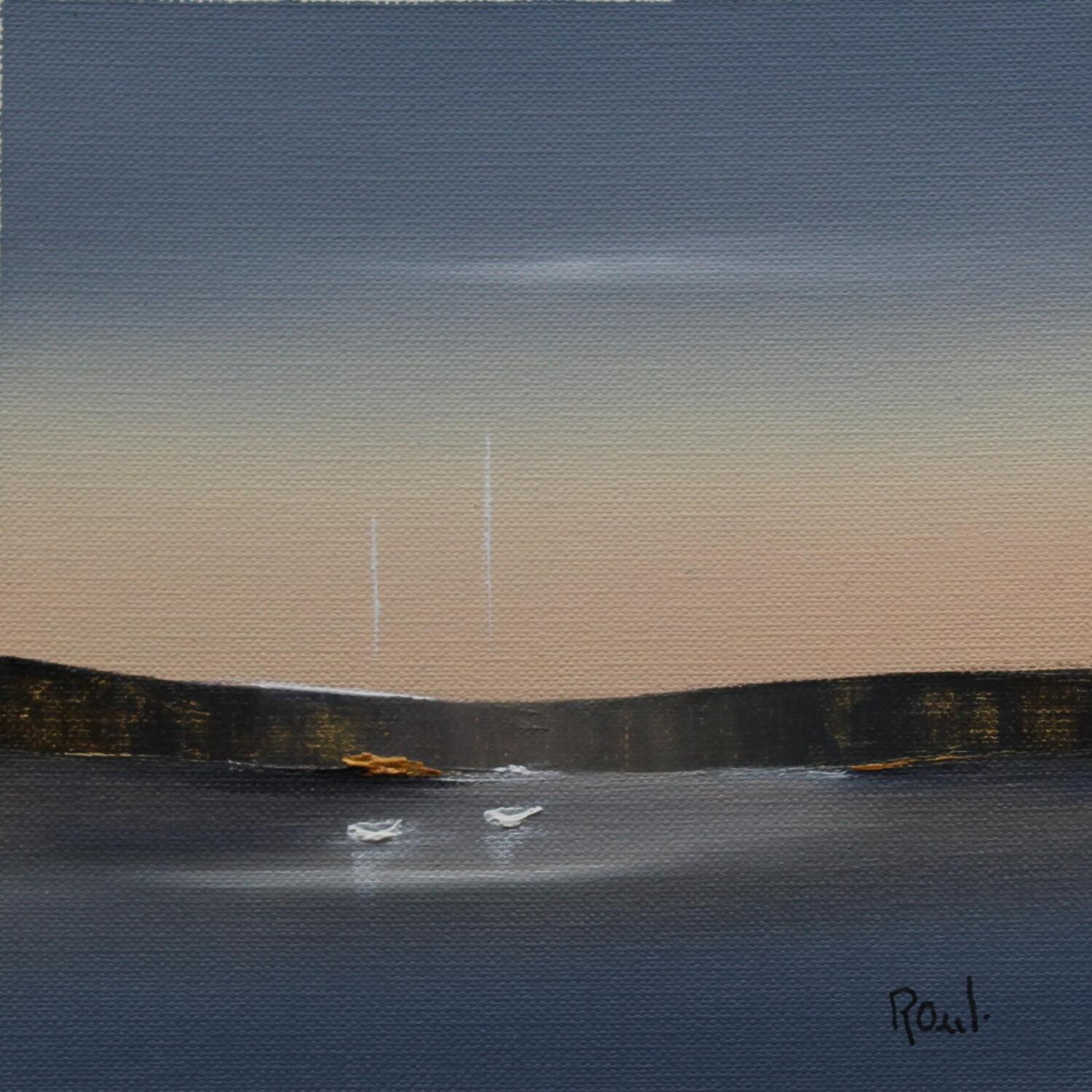 L'artiste a utilisé la technique Huile pour créer cette peinture petit format sur Papier de style Figuratif sur les thèmes Minimaliste, Marine.