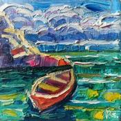 Boat and clouds Peinture Boat and clouds  par Georgieva Vanya | Tableau Figuratif Paysages Huile