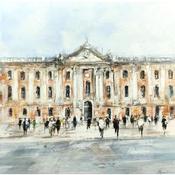 Peinture Le Capitole par Poumelin Richard | Tableau Figuratif Urbain Scènes de vie Huile