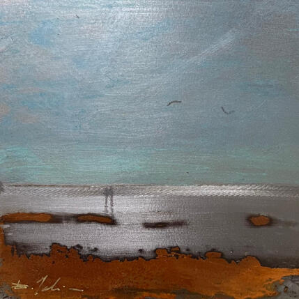 L'artiste a utilisé la technique Métal pour créer cette peinture petit format sur Métal de style Figuratif sur le thème Paysages.