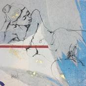 L'artiste a utilisé différentes techniques pour créer cette peinture petit format sur papier de style Figuratif sur le thème nu.