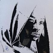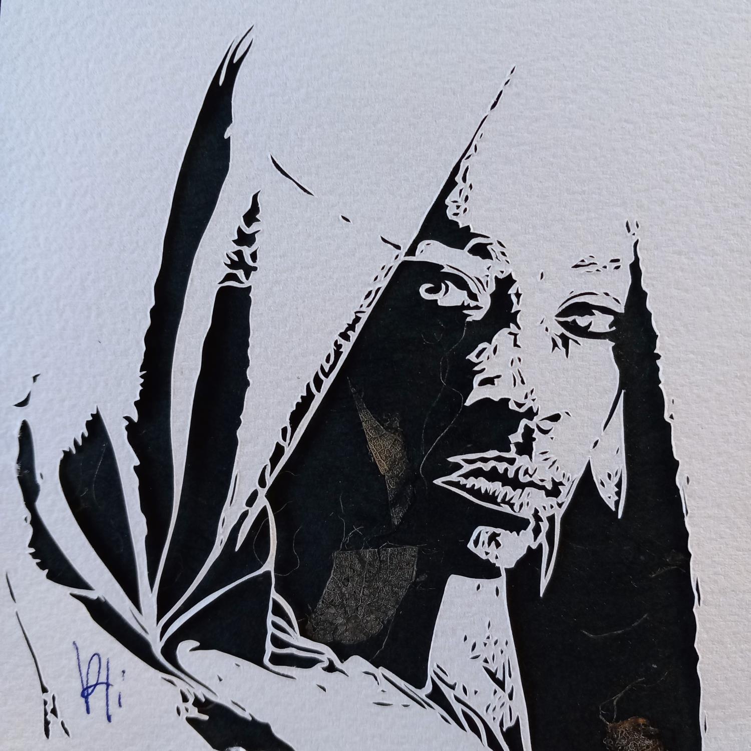 L'artiste a utilisé la technique du papier découpé pour créer cette oeuvre petit format sur papier de style Figuratif sur le thème Portraits.