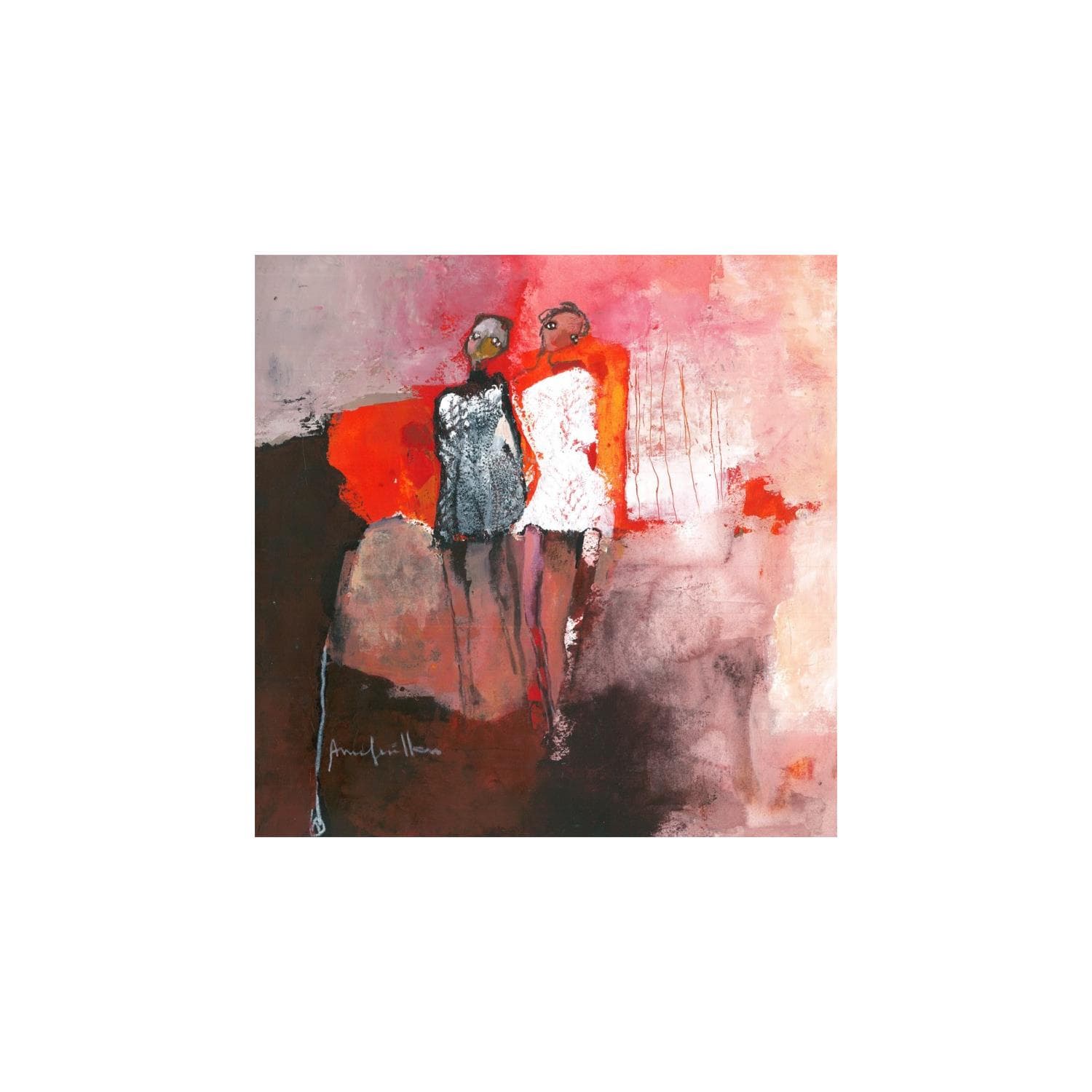 L'oeuvre d'art contemporain Dans le rouge de l´instant est un tableau moderne de l'artiste Anne Guillon. Il s'agit d'une peinture contemporaine unique et originale de style Figuratif
