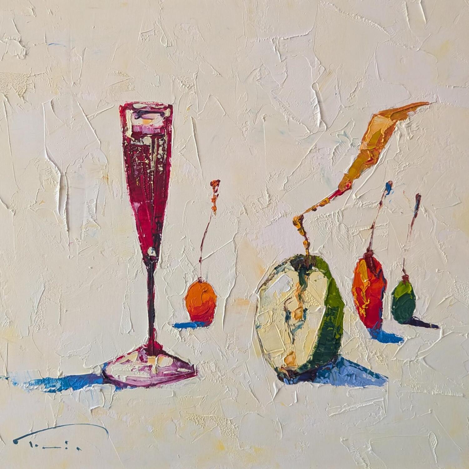 Cette oeuvre d'art contemporain unique et originale "Vin dans une long verre" a été réalisée par l'artiste contemporain Tomàs. L'artiste a utilisé la technique Huile pour créer cette peinture petit format sur Papier de style Impressionnisme sur le thème Natures mortes.
