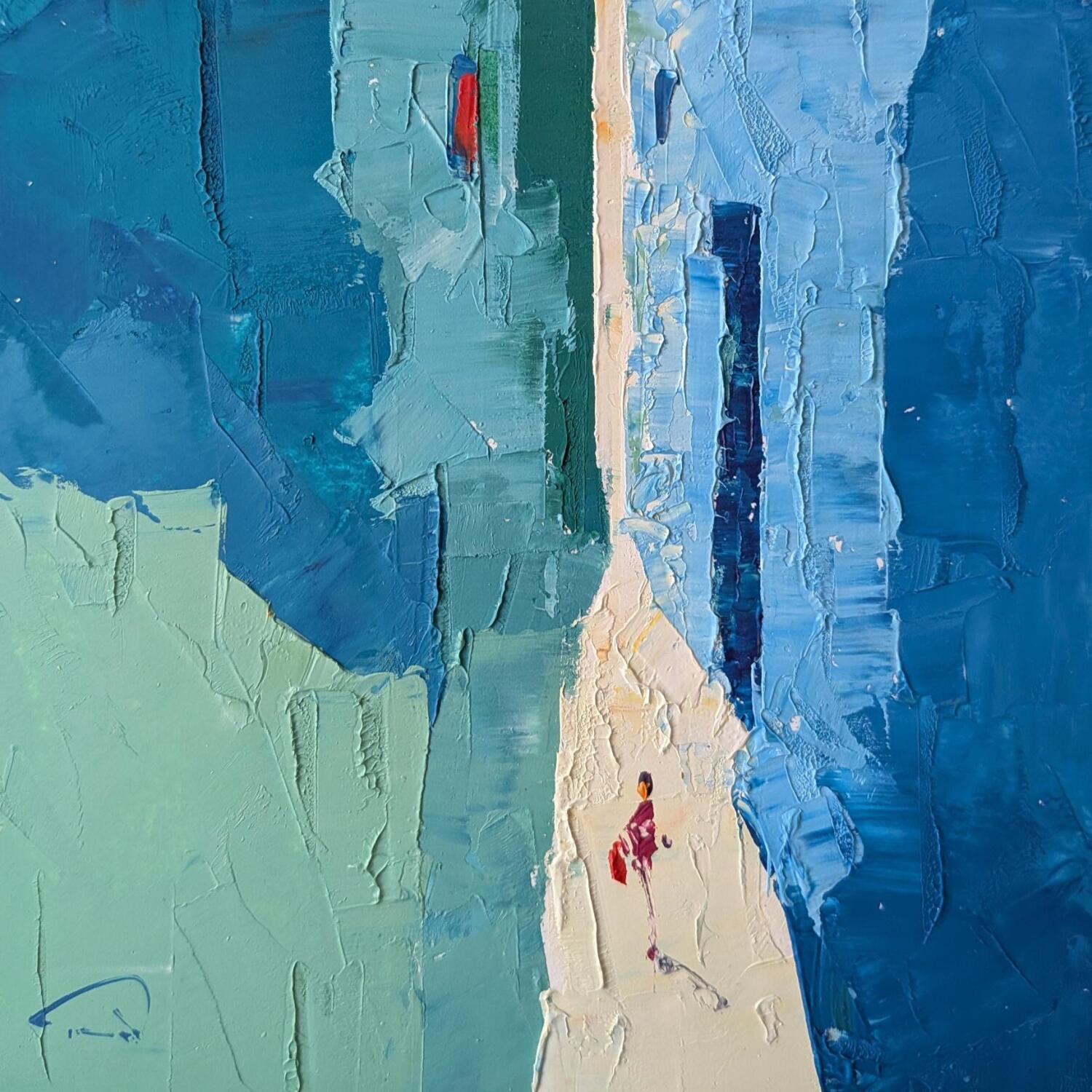 Peinture Blau i verd par Tomàs | Tableau Impressionnisme Urbain Scènes de vie Huile