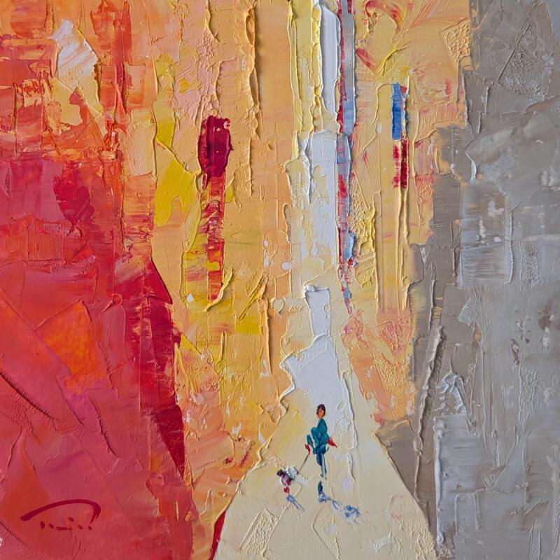 L'artiste a utilisé la technique Huile pour créer cette peinture petit format sur Papier de style Impressionnisme sur les thèmes Urbain, Scènes de vie.
