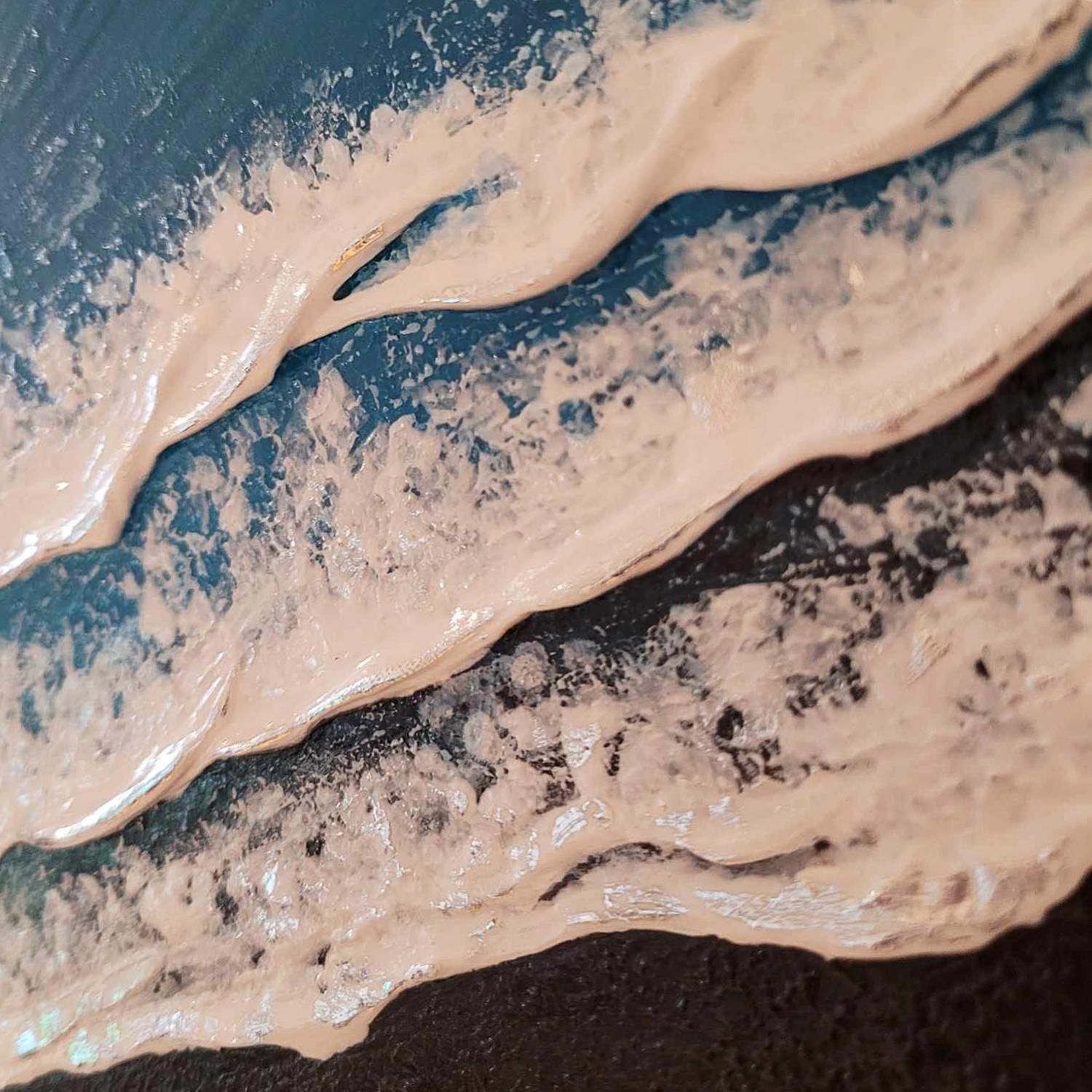 Peinture Tahiti par Geiry | Tableau Matiérisme Paysages Marine Nature Acrylique Résine Feuille d'argent Pigments Poudre de marbre