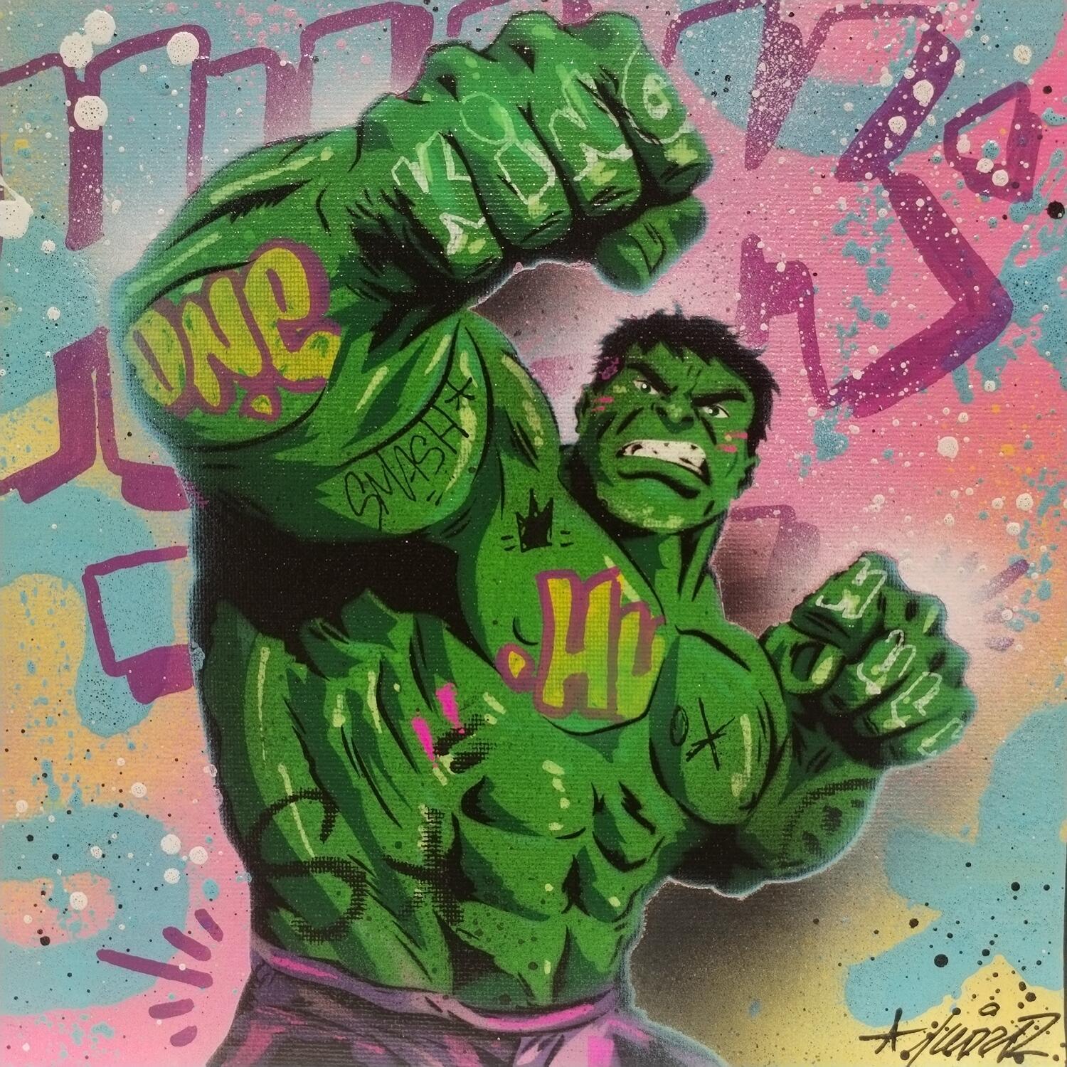 Cette oeuvre d'art contemporain unique et originale "furious hulk" a été réalisée par l'artiste contemporain Lemoine Mael.