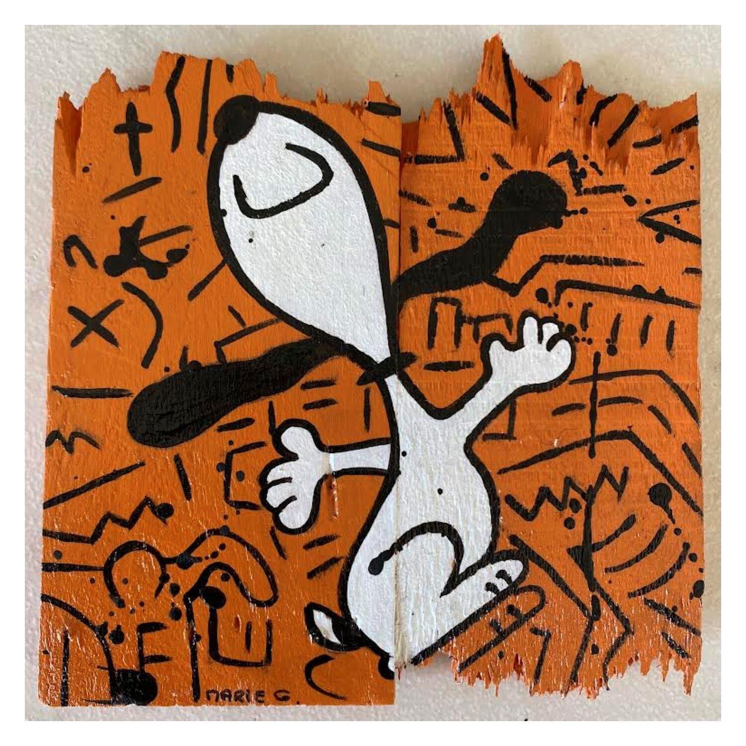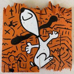 L'artiste a utilisé de l'Acrylique pour créer cette peinture petit format sur une composition en Bois de style Pop-art sur le thème Icones Pop.