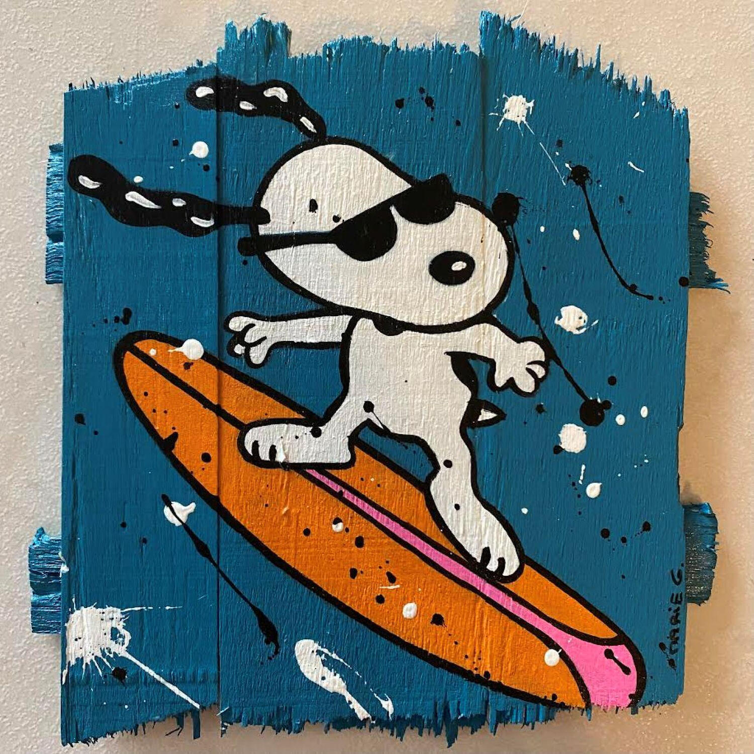 L'artiste a utilisé de l' Acrylique pour créer cette peinture petit format sur une composition en Bois de style Pop-art sur le thème Icones Pop.